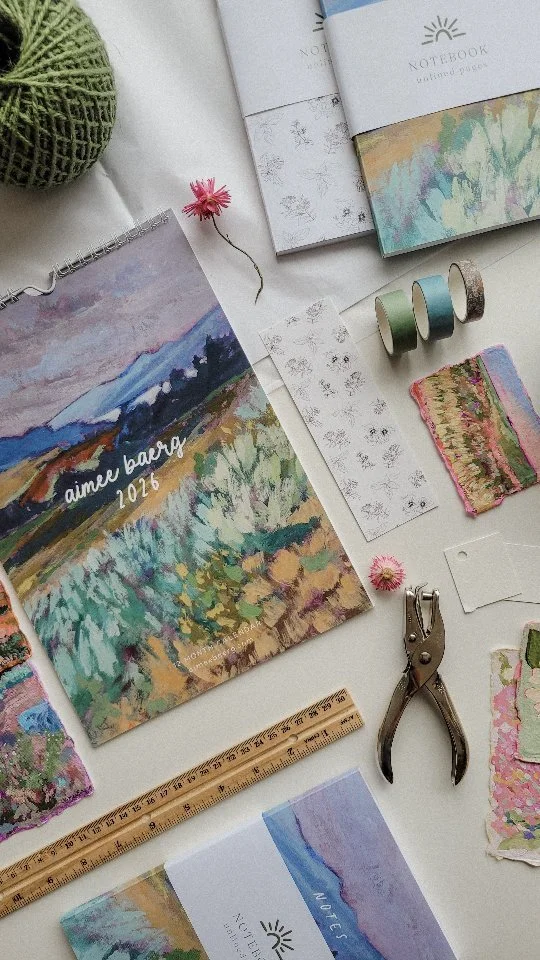Hi, friend! I’m Aimee Baerg, an artist and mother, and my paintings are inspired by my surroundings in the Okanagan Valley, created amidst the messiness of motherhood.